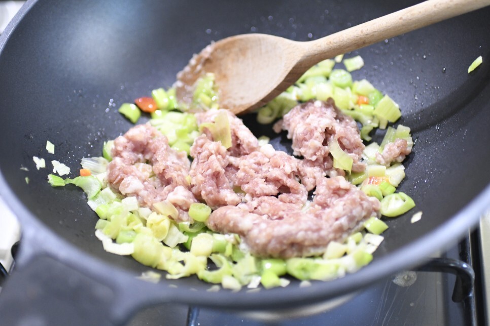 3. 기름을 둘러 먼저 파를 볶아