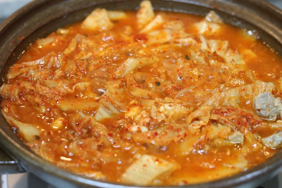 스팸은 특유의 풍미와 짠맛 때문에 호불호가 있는 식재료이지만 감칠맛 도는 육수를 붓고 묵은지와 특제 양념장을 첨가해서 진하게 끓여내면 잘 익은 김치의 풍미와 스팸 특유의 맛이 조화를 이루는 묵은지 김치찌개를 완성할 수 있답니다.