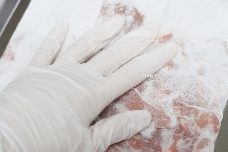 키친타월 위에 올려 꼭꼭 눌러가면서