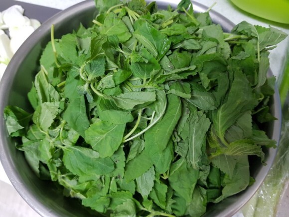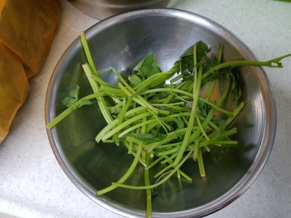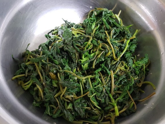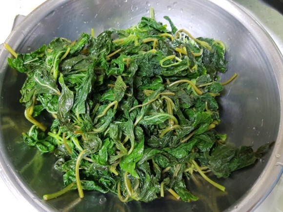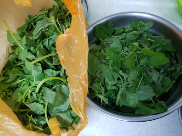 먹기좋은 부드러운 잎과 연한줄기를 분리해뒀어요.