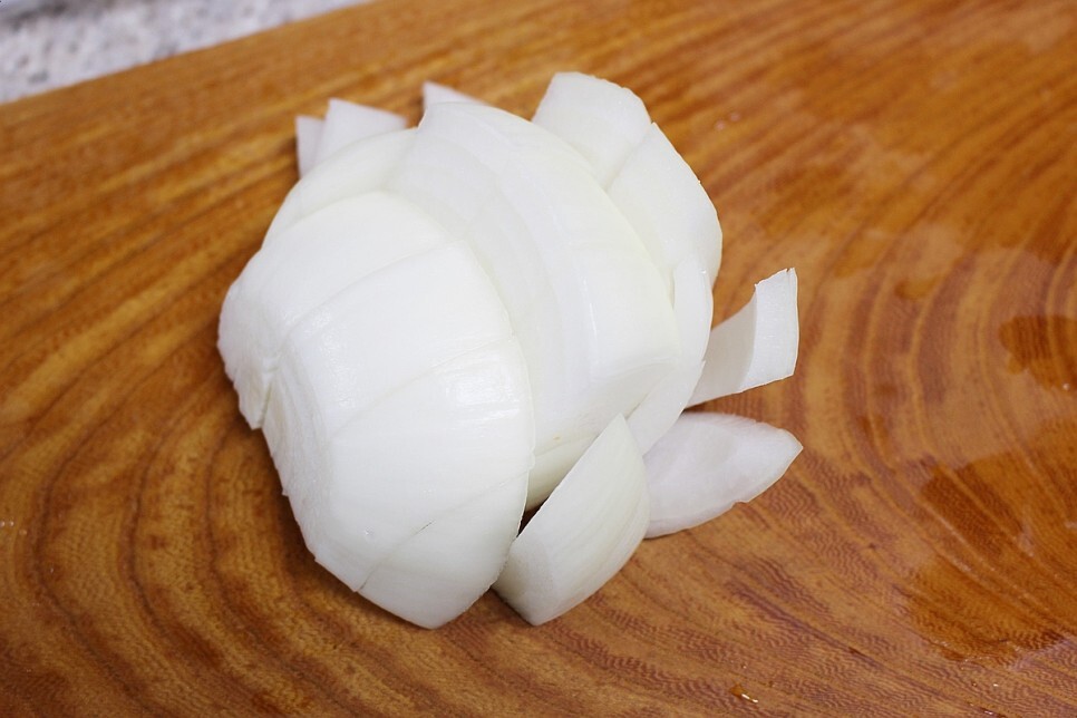 부재료로 들어갈 양파도 반개 분량 깍둑 썰어줍니다