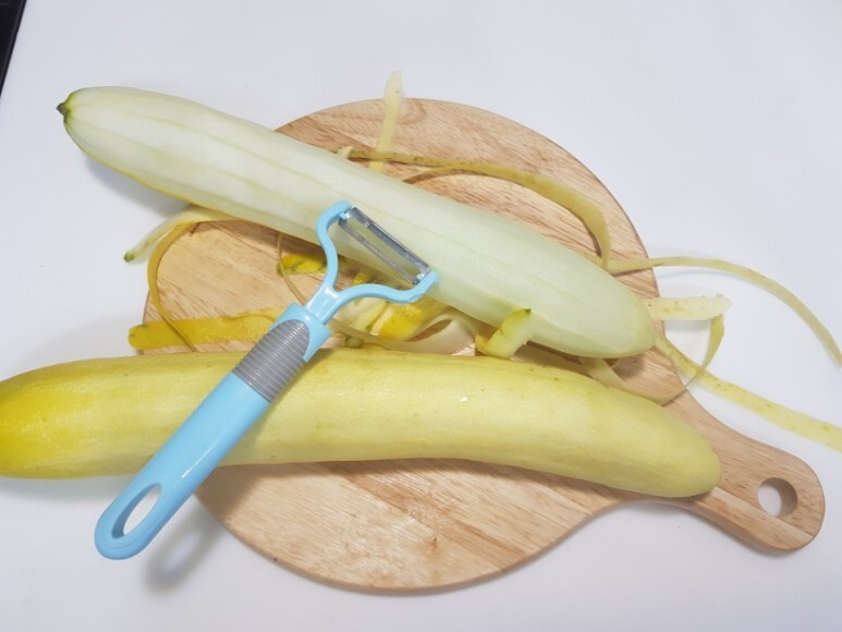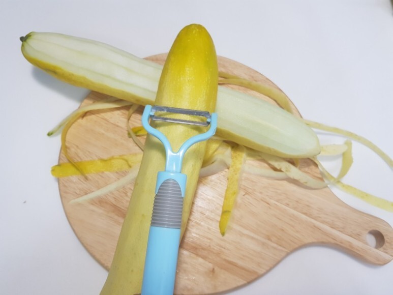 오이의 겉면에 오돌토돌한 부분은 채칼을 이용하여 제거한 뒤