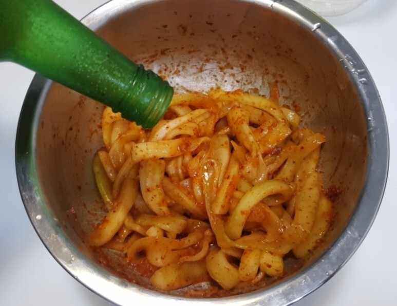 양념 : 소금, 고추장, 고춧가루, 찐 마늘, 설탕, 식초, 참기름