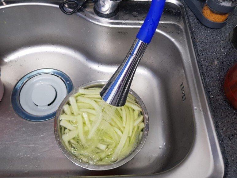 이제 흐르는 물에 3~4번 헹궈주고 물기 없이 짜주어요~