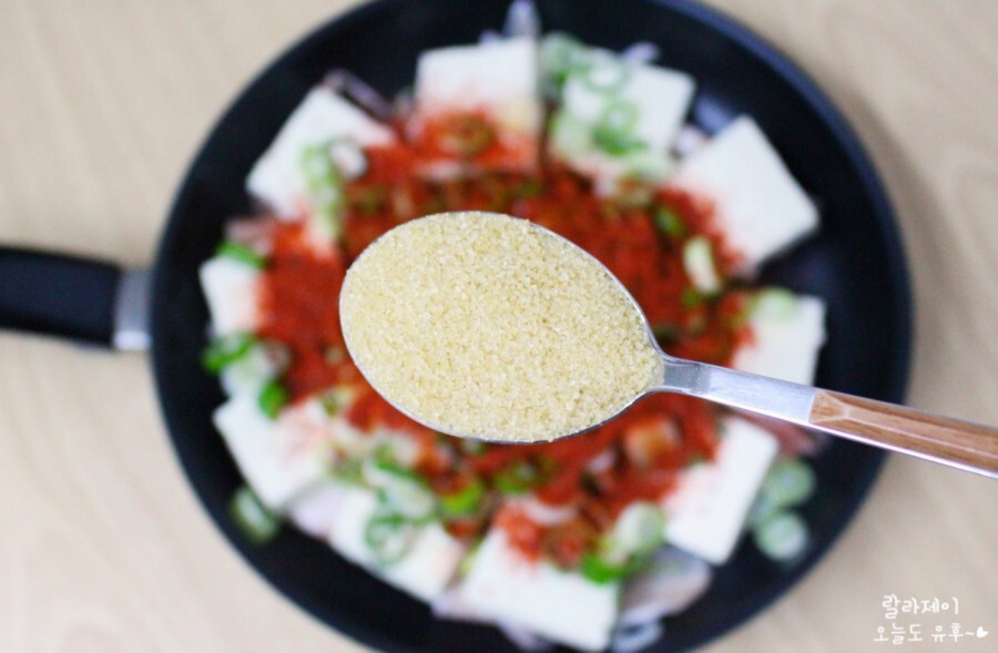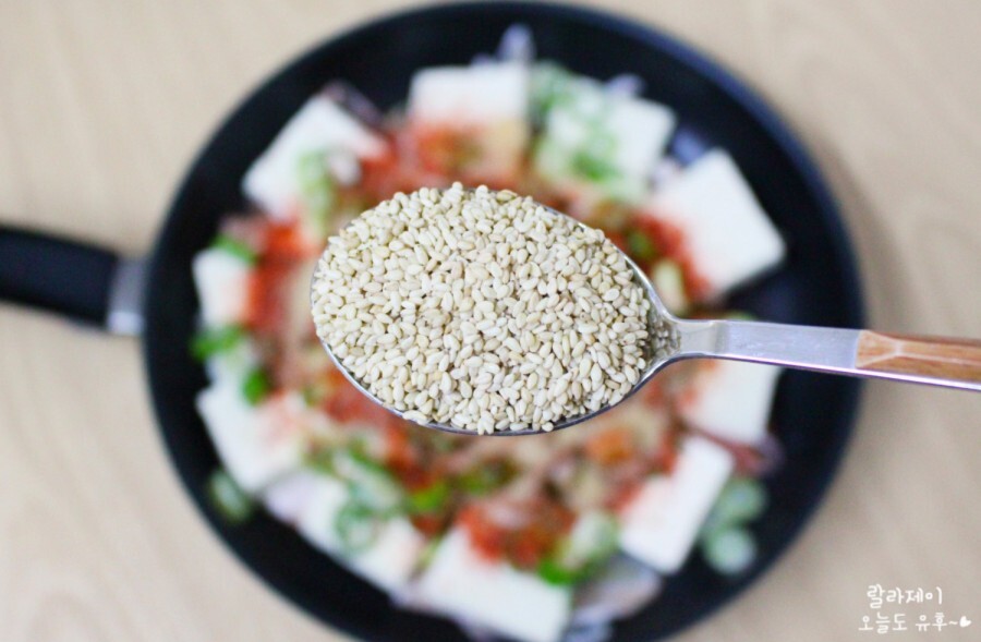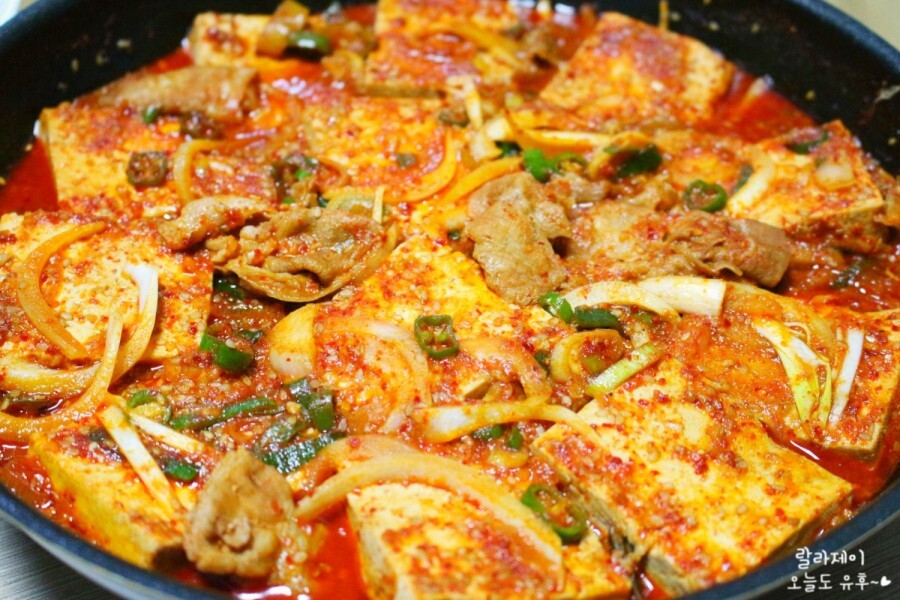 그위에 두부를 깔아요