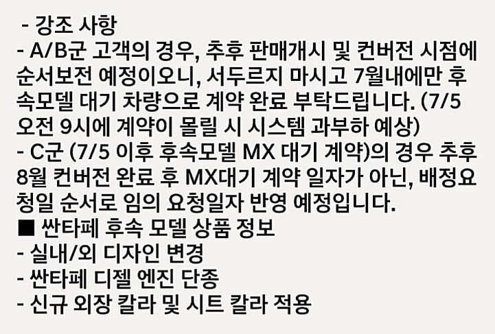 오늘날짜 7월 5일부터 계약하시는 분들이 컨버젼계약순번 (다음달8월)로 차량순서가 배정된다고 보시면 되겠습니다.