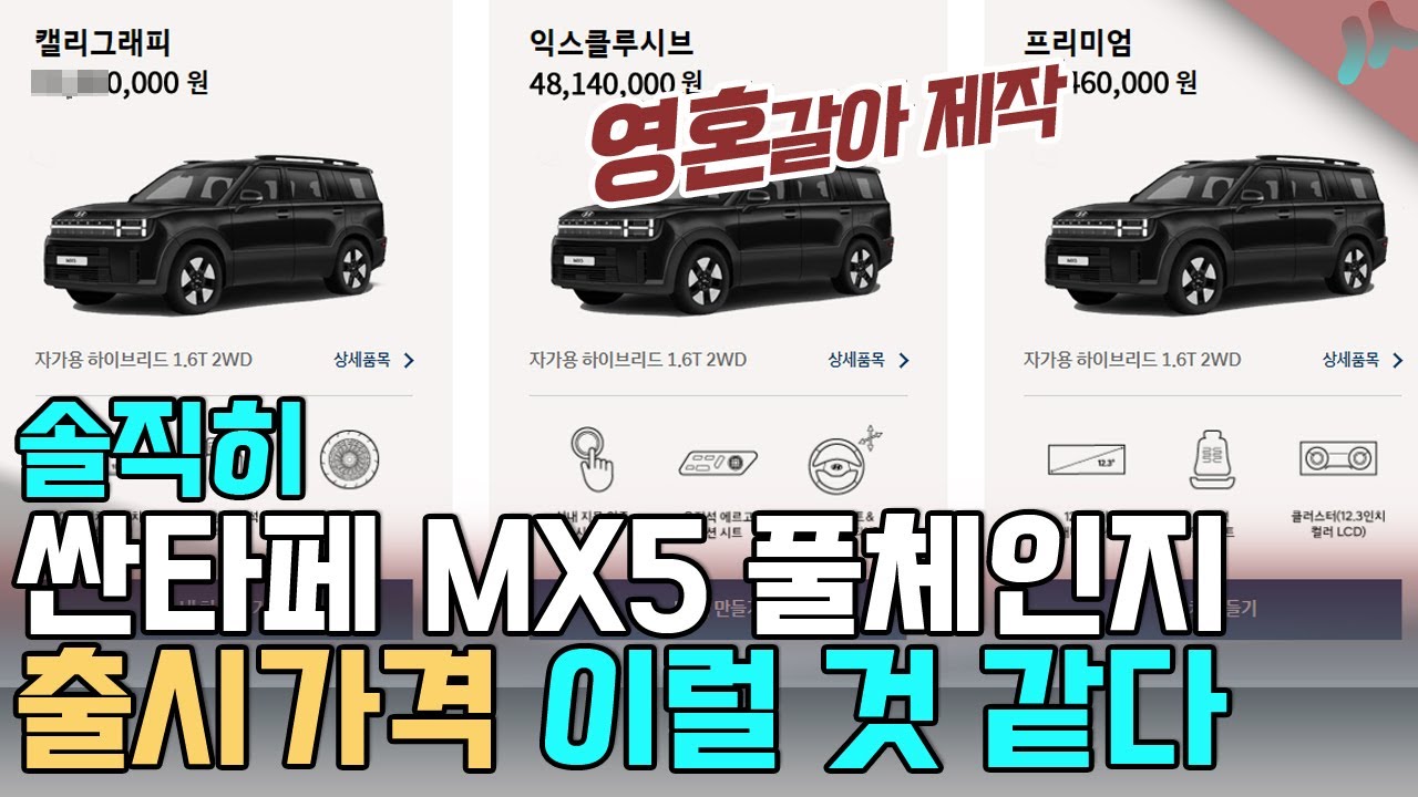 2024 싼타페 풀체인지 MX5 가격 인상 전,