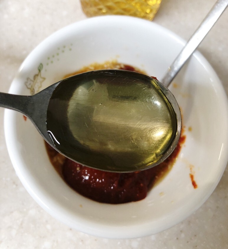 매콤하게 만들기 위해 고추기름을 넣어