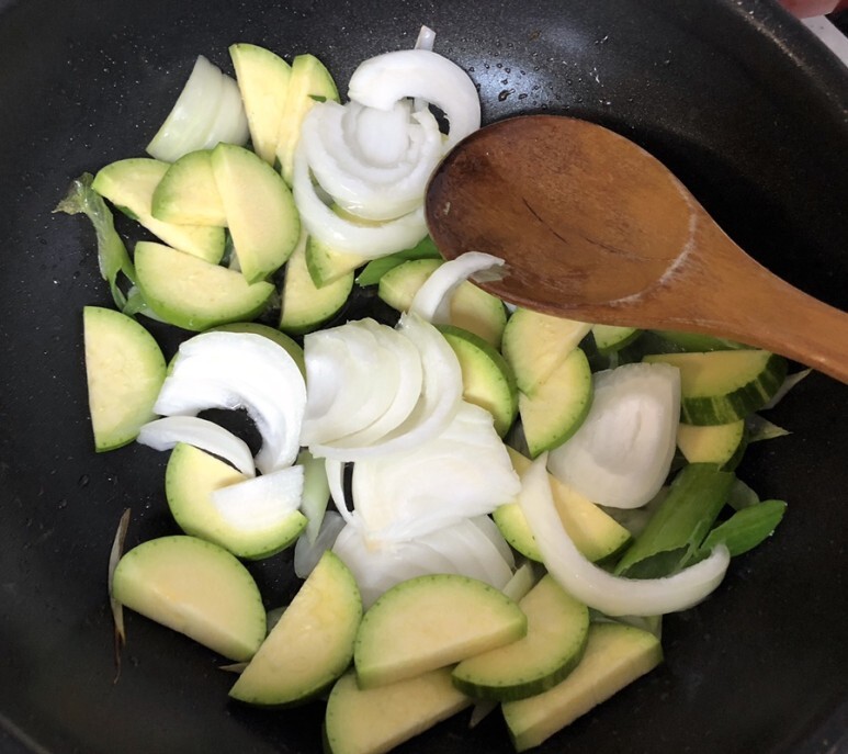 파 기름을 낸 팬에 야채를 넣고 볶아주는데요 ~ 남편이 볶음 요리에 국물이 너무 많을 걸 싫어하는데 오징어랑 야채를 같이 볶으면 국물이 많이 생겨요 ~ 그래서 저는 낙지볶음, 오징어볶음 요리를 할 때 꼭 채소를 먼저 볶는답니다