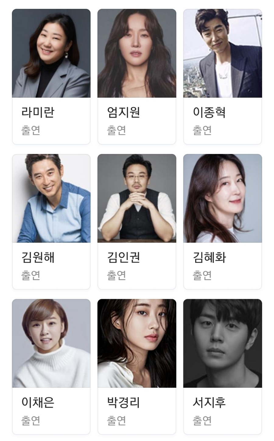 라미란 엄지원 외에 고해라 남편으로 공수표(이종혁) 그리고 김원해 김인권 김혜화 이채은 등이 출연합니다.