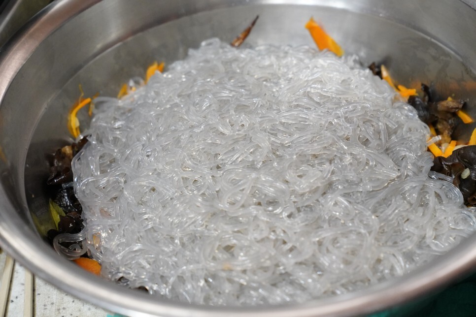 삶을 때 식용유를 넣으면 면들이 엉겨 붙지 않는것을 방지할 수 있으니 당면삶을때 불지않게 식용유 넣어 주세요.