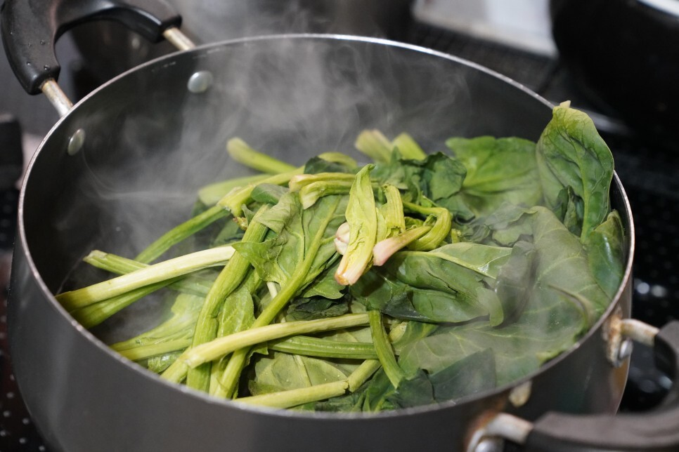 시금치는 끓는 물에 굵은소금을 약간 넣고 살짝 데쳤다가