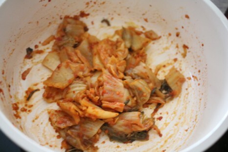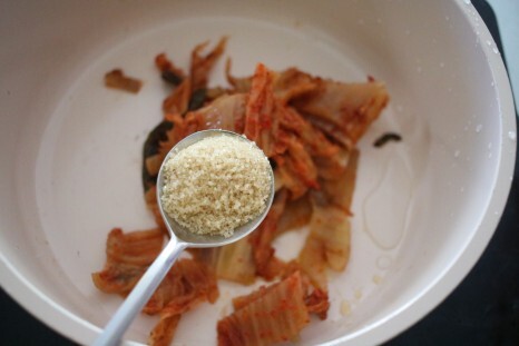 작게 자른 김치와 설탕 1숟가락을 넣고
