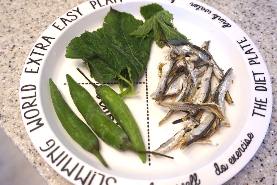 호박잎 한장과 국물용 멸치