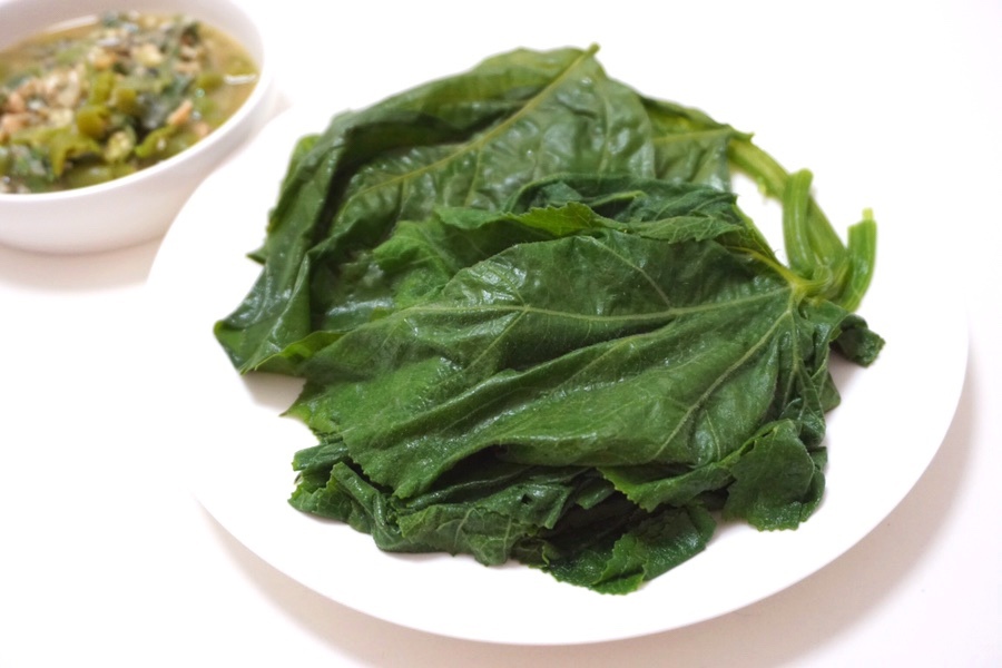 부드럽게 쪄진 호박잎에